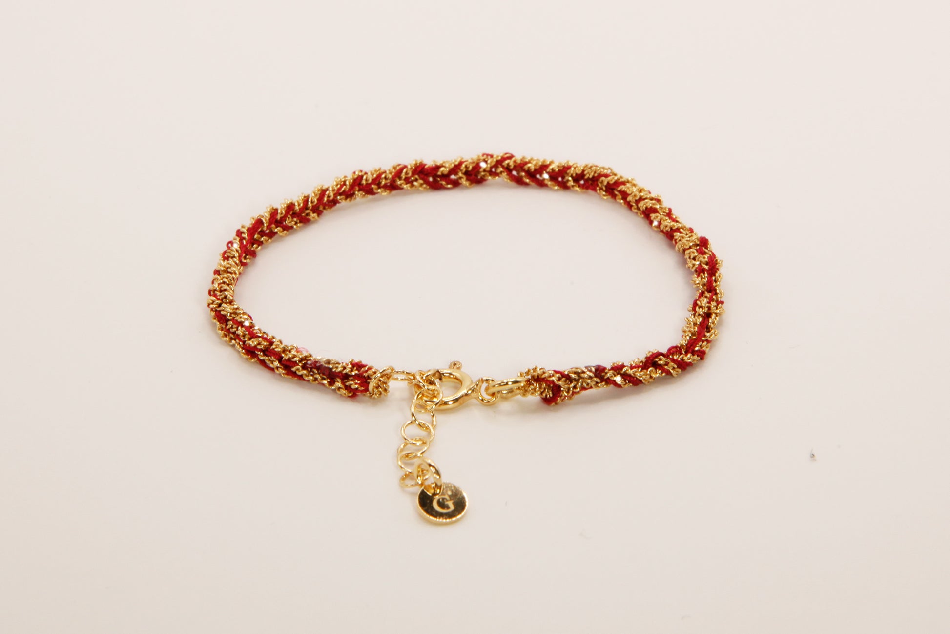 Geflochten mit Seide ummanteltem Garn in Himbeerrot.