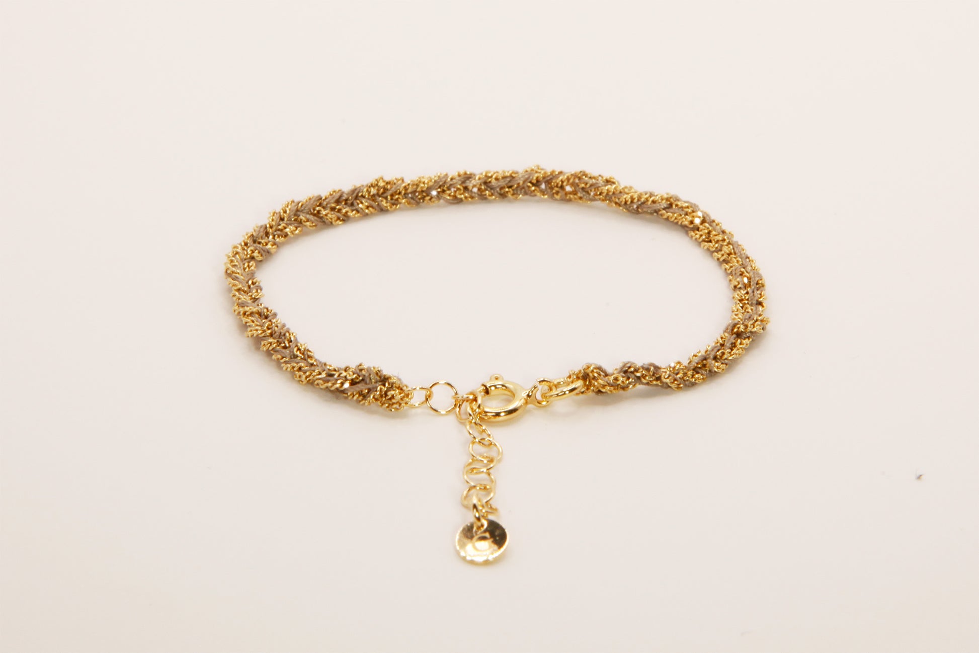 Geflochten mit Seide ummanteltem Garn in Kiesel-Beige.