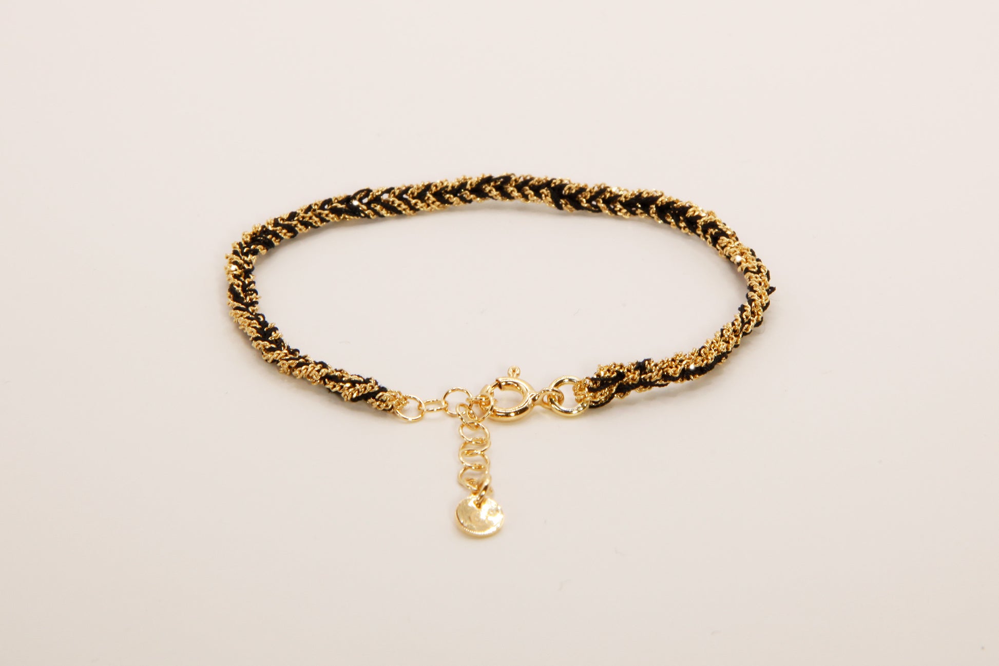 Geflochten mit Seide ummanteltem Garn in Onyx-Schwarz.