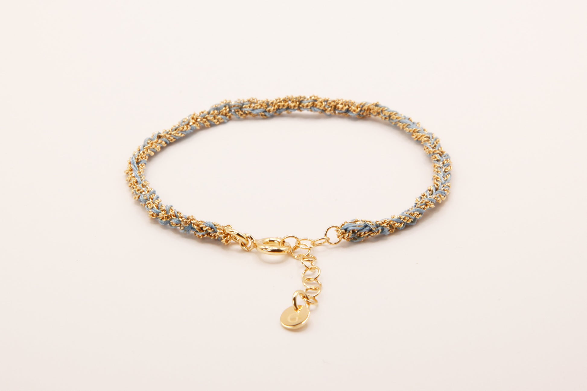 Geflochten mit Seide ummanteltem Garn in Vergissmeinnicht-Blau.